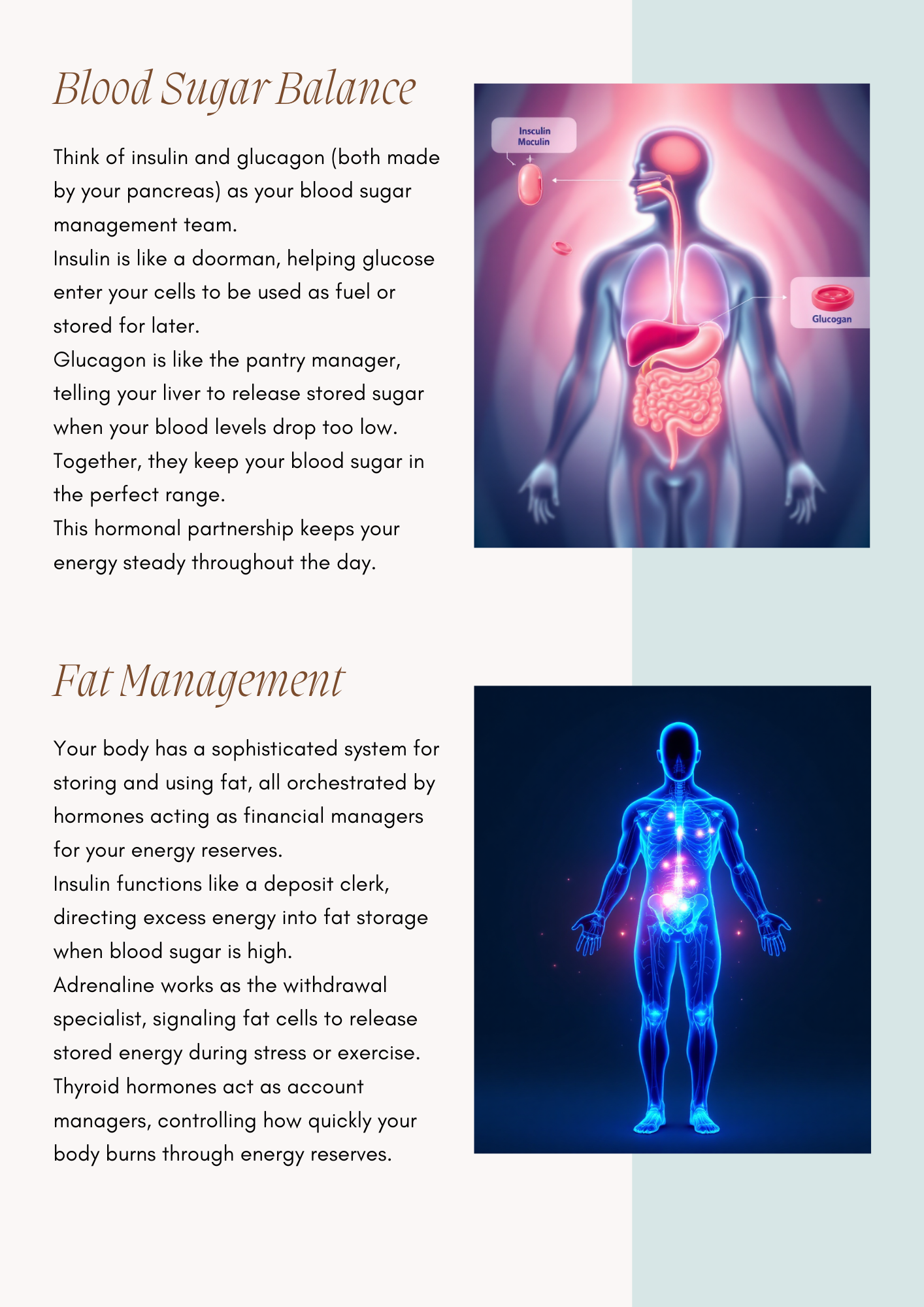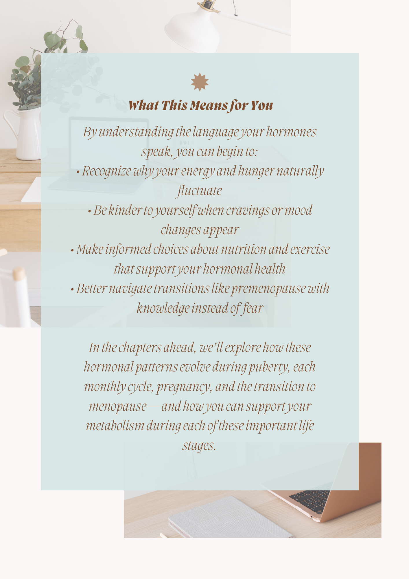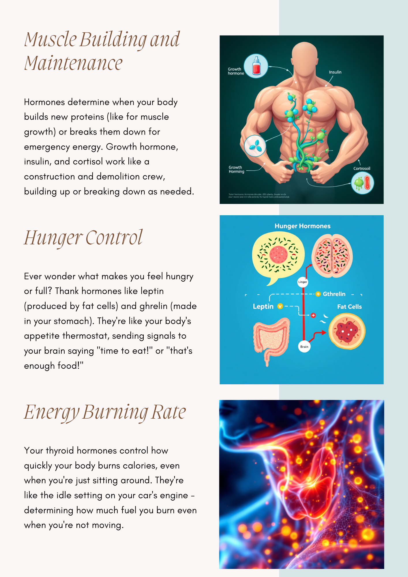 - Information on factors influencing hormone levels, including nutrition, stress, sleep, and environmental influences.